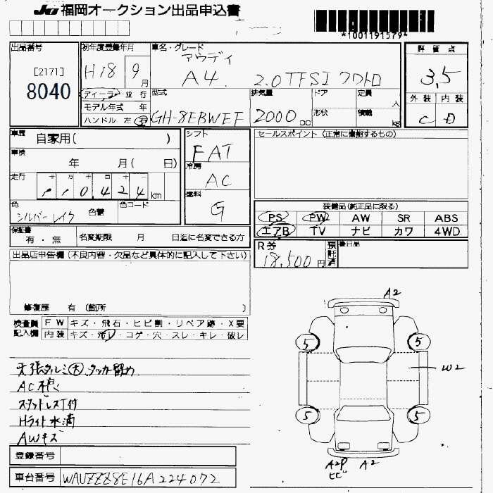 AUDI A4 2.0TFSI quattro - лот 8040