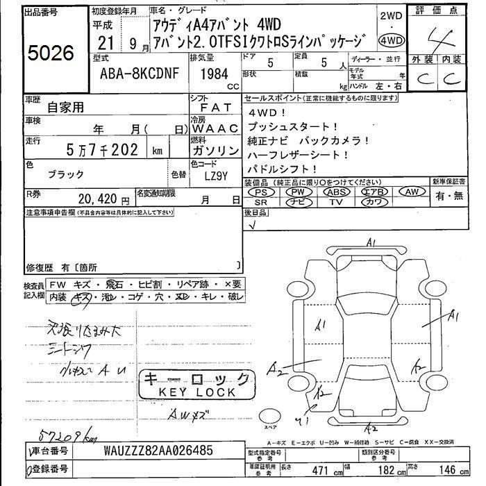 AUDI A4 4WD 2.0TFSI quattro S line PKG - лот 5026