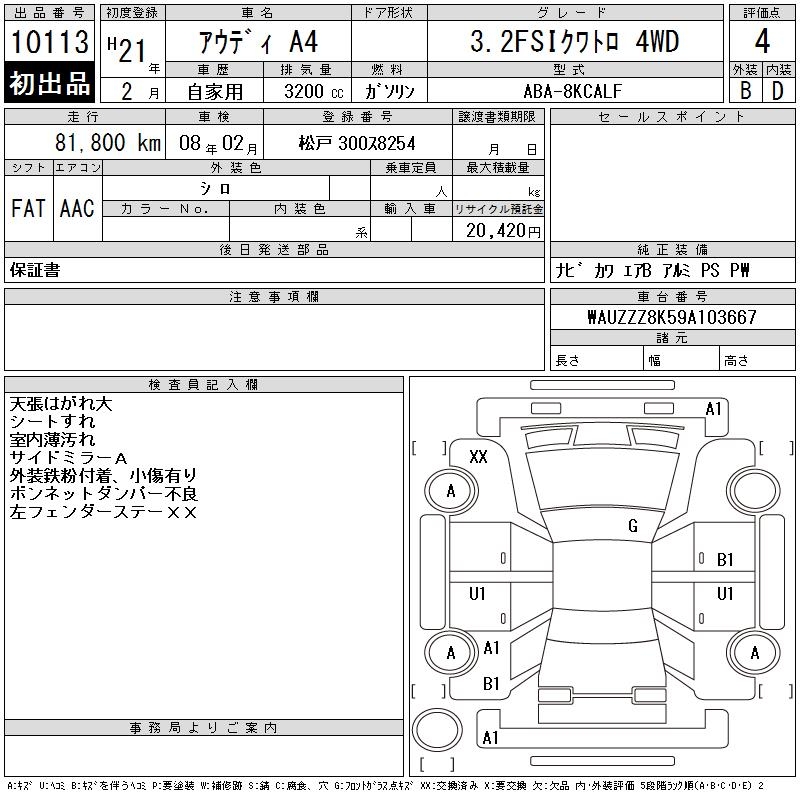 AUDI A4 3.2FSI QUATTRO 4WD - лот 10113