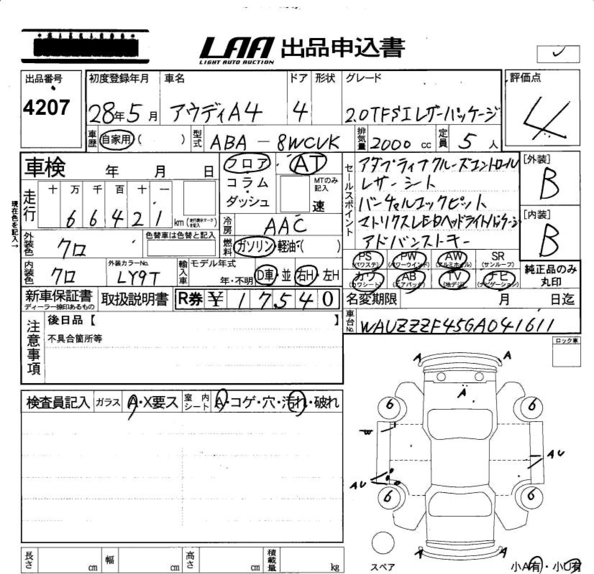AUDI A4 2.0TFSI LEATHER KE- - лот 4207
