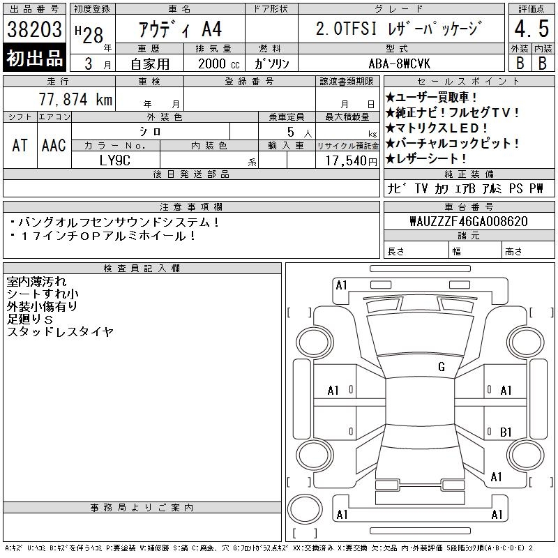 AUDI A4 2.0TFSI LEATHER PACKAGE - лот 38203