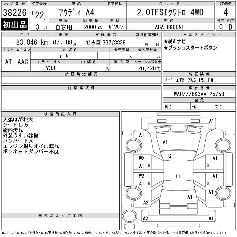 AUDI A4 2.0TFSI QUATTRO 4WD - лот 38226