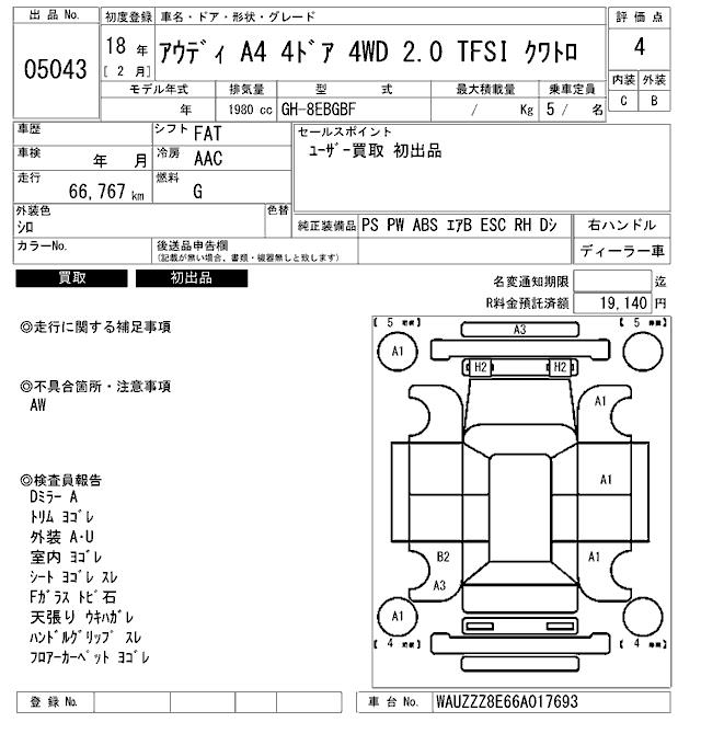 AUDI A4 2.0 TFSI QUATTRO - лот 5043