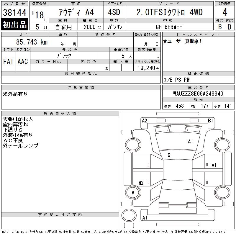 AUDI A4 2.0TFSI QUATTRO 4WD - лот 38144