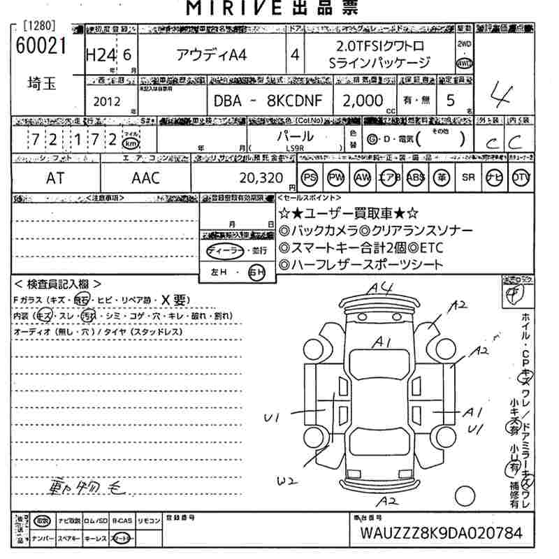 AUDI A4 2.0TFSI QUATTRO S LINE PACKAGE - лот 60021