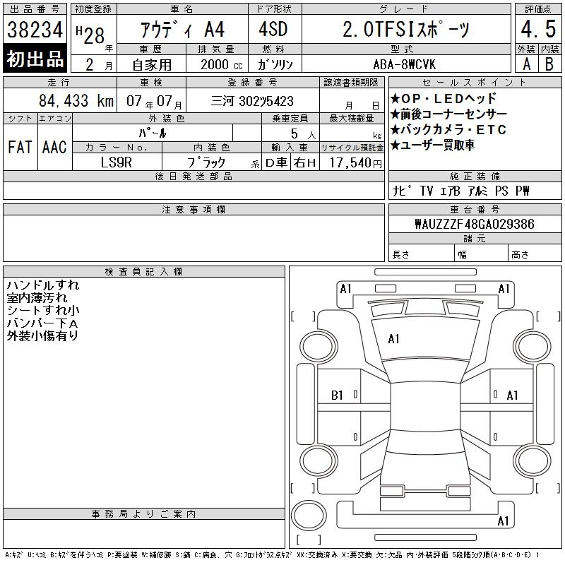 AUDI A4 2.0TFSI SPORT - лот 38234