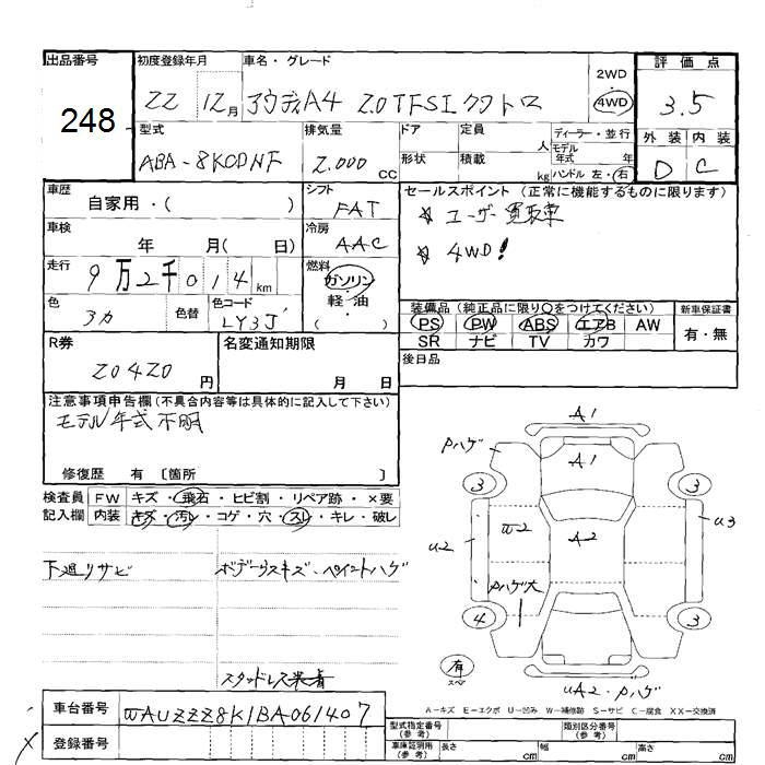 AUDI A4 2.0TFSI QUATTRO - лот 248