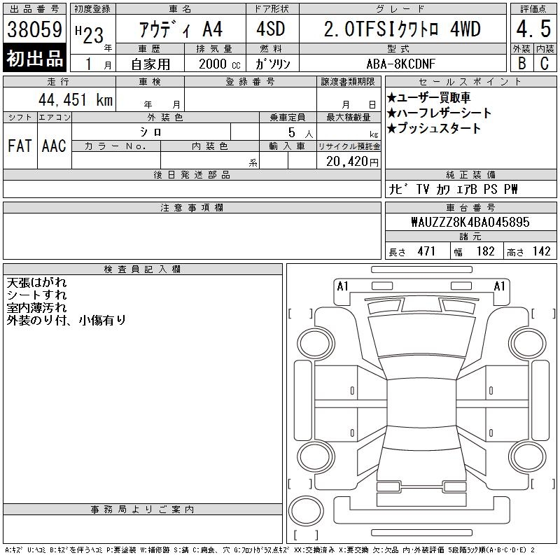 AUDI A4 2.0TFSI QUATTRO 4WD - лот 38059