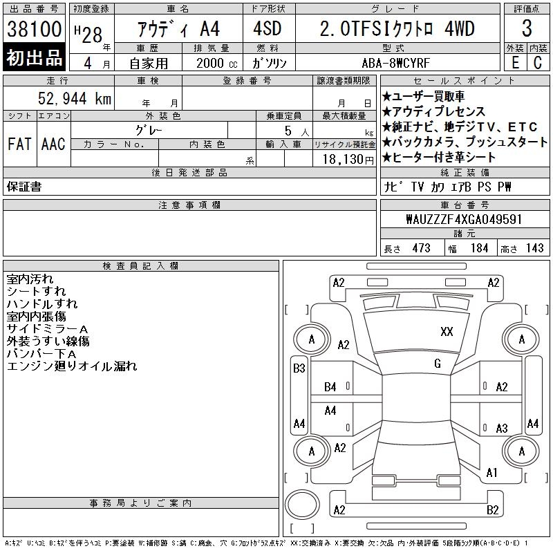 AUDI A4 2.0TFSI QUATTRO 4WD - лот 38100