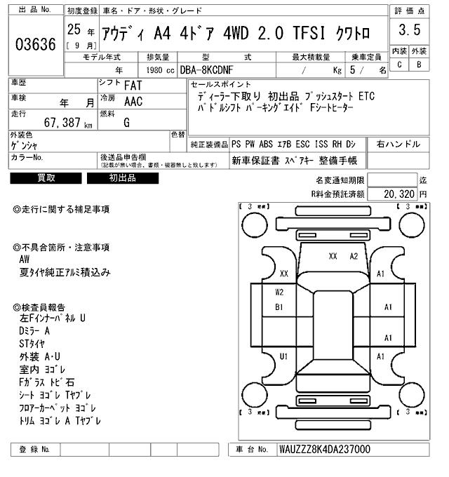 AUDI A4 2.0 TFSI QUATTRO - лот 3636