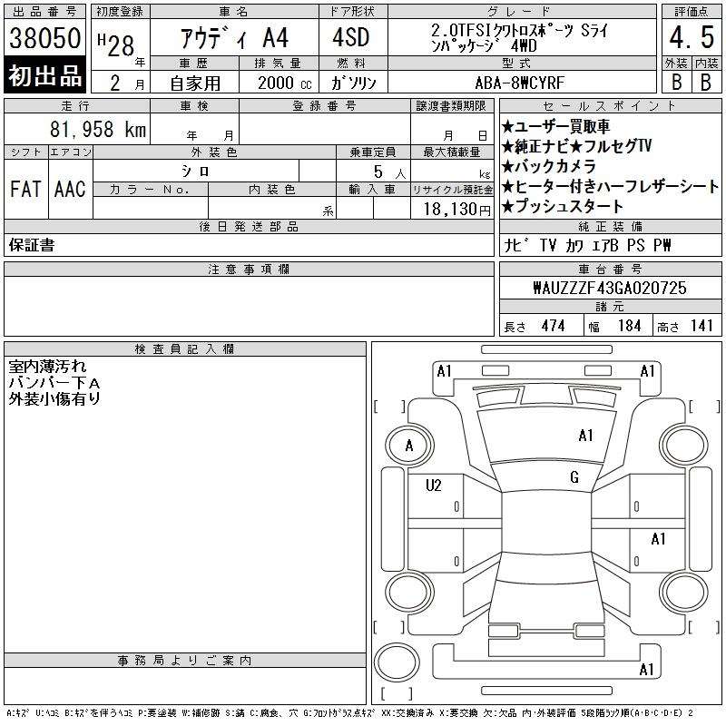 AUDI A4 2.0TFSI QUATTRO SPOILER SLA4WD - лот 38050