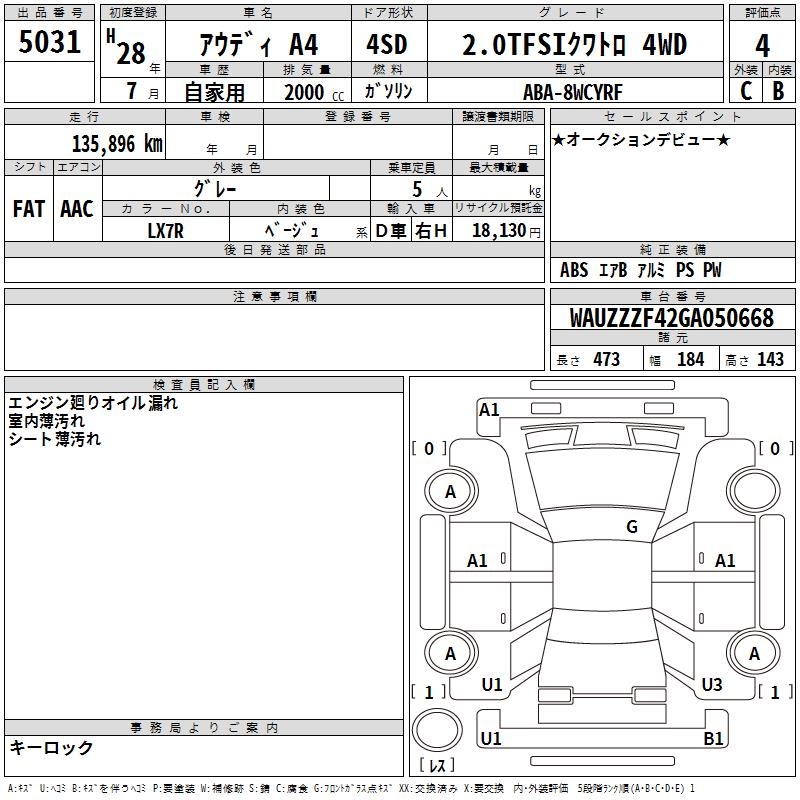 AUDI A4 2.0TFSI QUATTRO 4WD - лот 5031