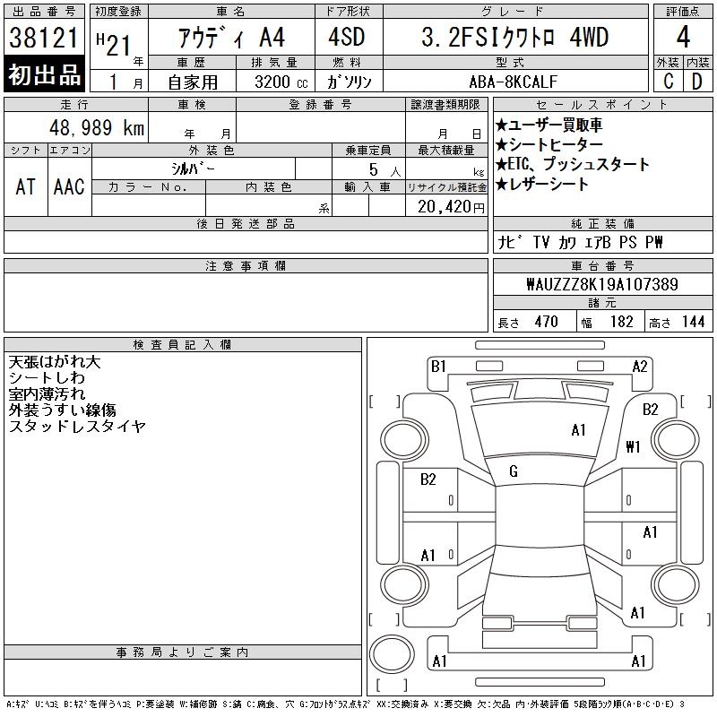 AUDI A4 3.2FSI QUATTRO 4WD - лот 38121
