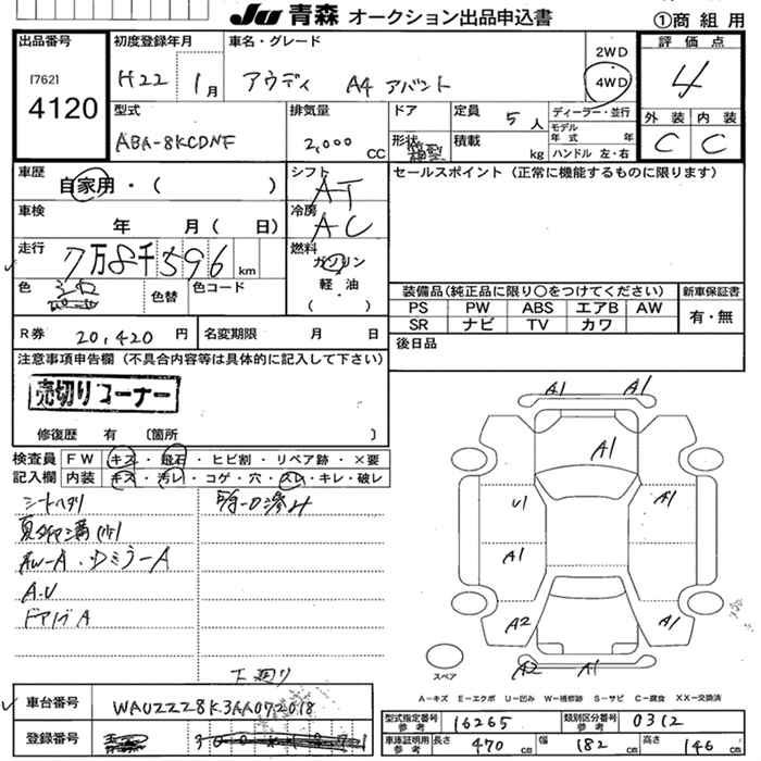 AUDI A4 4WD AVANTE - лот 4120