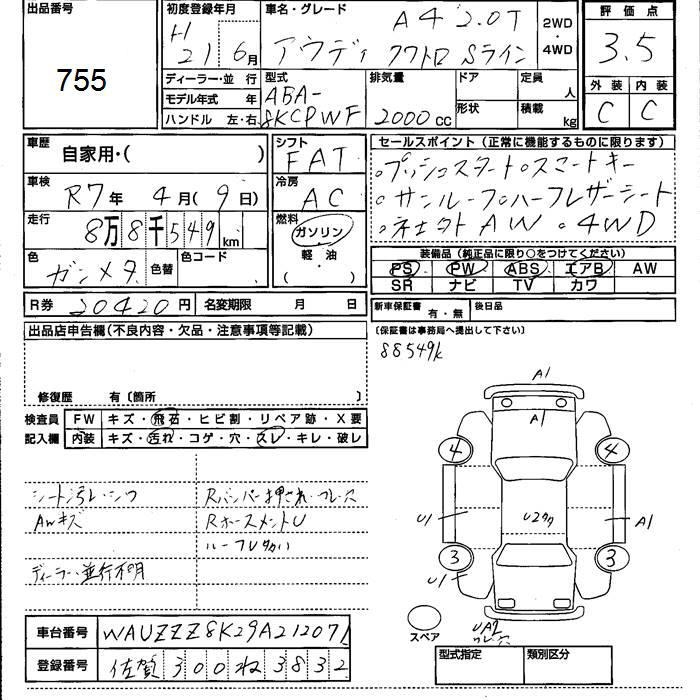 AUDI A4 2.0T quattro S line - лот 755
