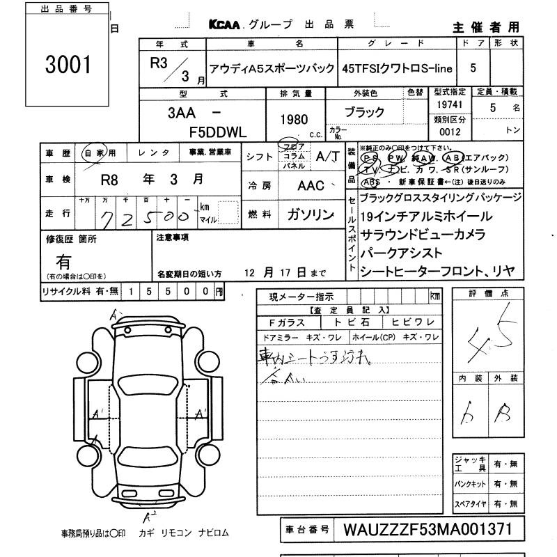 AUDI A5 SPORTBACK - лот 3001