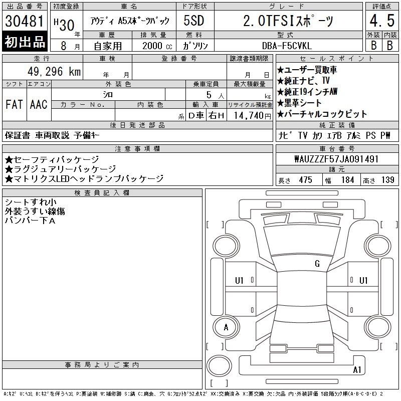 AUDI A5 SPORTBACK - лот 30481
