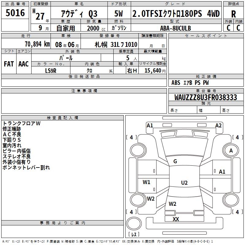 AUDI Q3 2.0TFSI QUATTRO 180PS 4WD - лот 5016