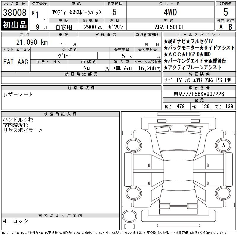 AUDI RS 5 SPORTBACK - лот 38008