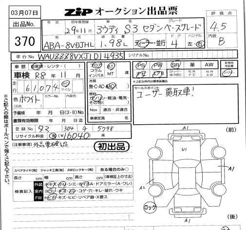 AUDI S3 SEDAN - лот 370