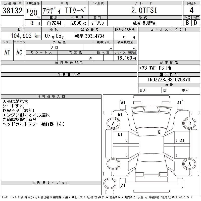 AUDI TT 2.0TFSI - лот 38132