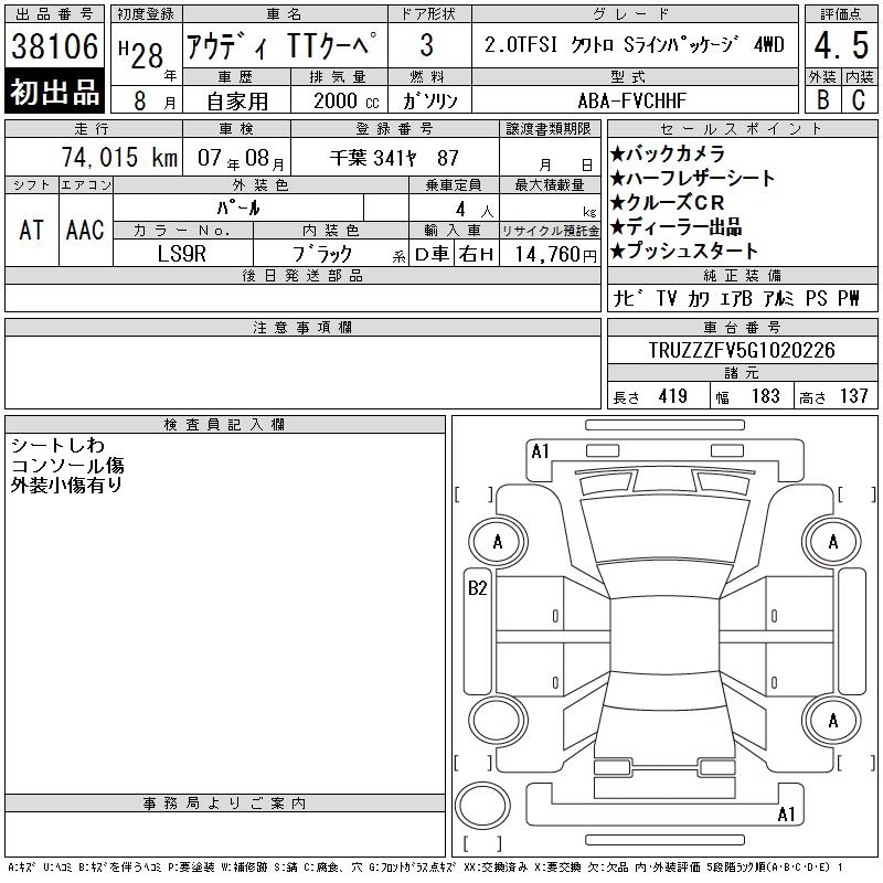 AUDI TT 2.0TFSI QUATTRO SLAI4WD - лот 38106