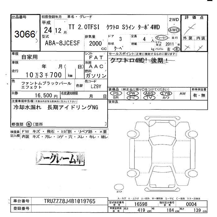 AUDI TT 2.0TFSI QUATTRO S LINE PACKAGE - лот 3066