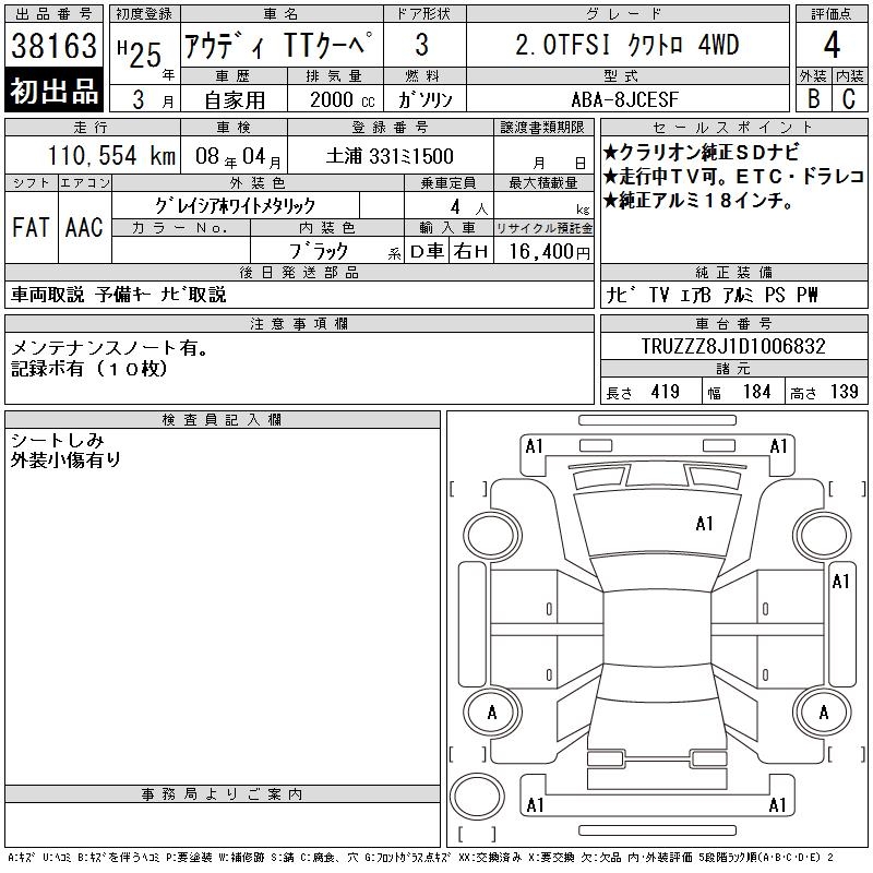 AUDI TT 2.0TFSI QUATTRO 4WD - лот 38163
