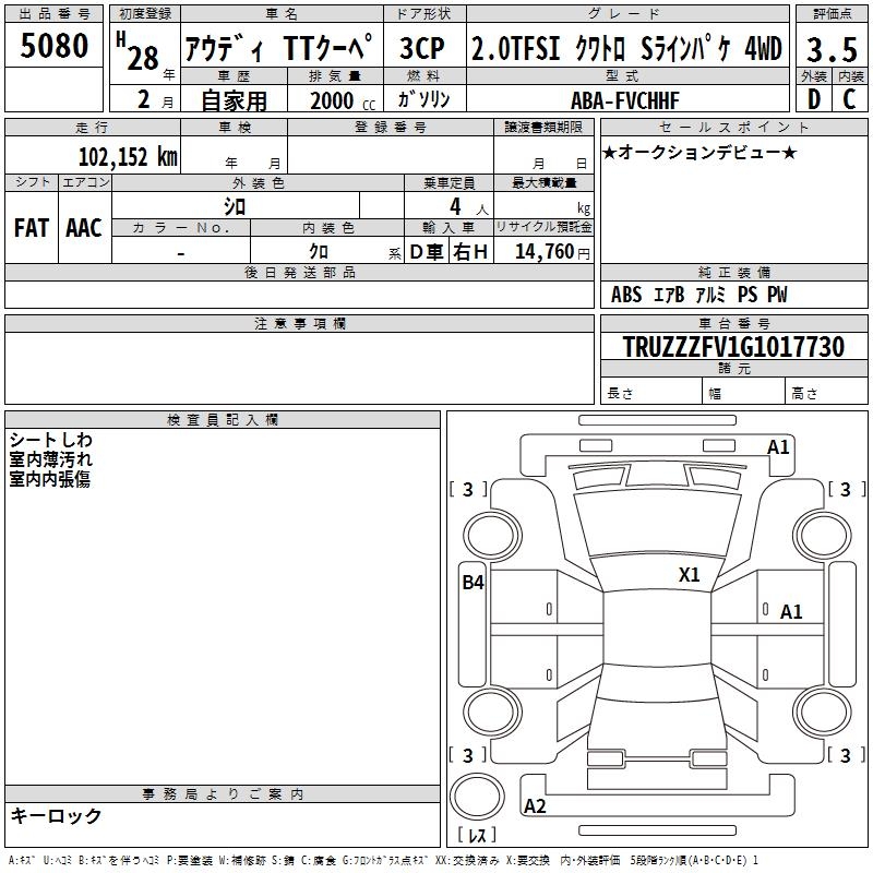 AUDI TT 2.0TFSI QUATTRO SLAI4WD - лот 5080
