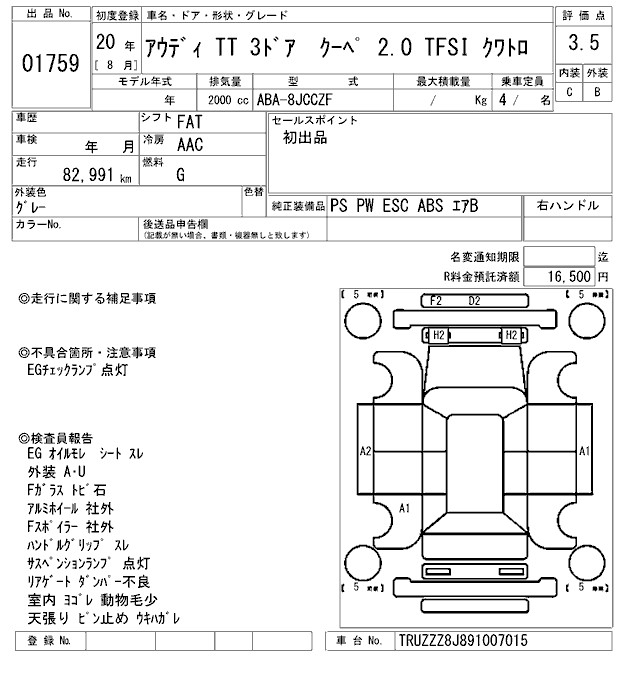 AUDI TT COUPE 2.0 TFSI QUATTRO - лот 1759