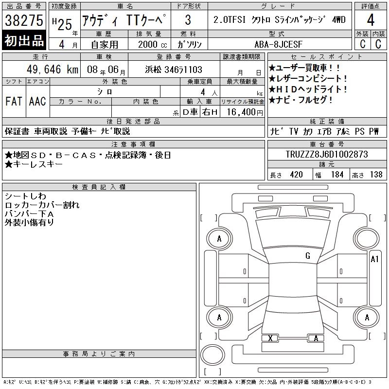 AUDI TT 2.0TFSI QUATTRO SLAI4WD - лот 38275