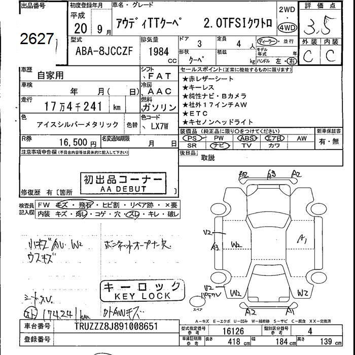 AUDI TT 4WD 2.0TFSI QUATTRO - лот 2627