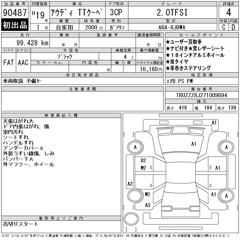AUDI TT 2.0TFSI - лот 90487