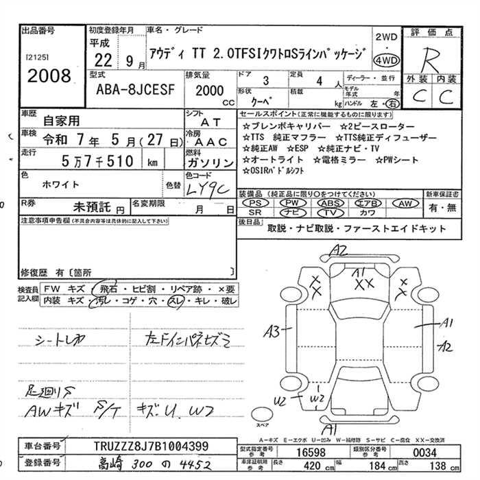 AUDI TT 4WD 2.0TFSI quattro S line package - лот 2008