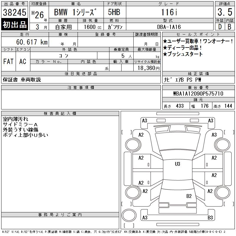 BMW 1 SERIES 116i - лот 38245