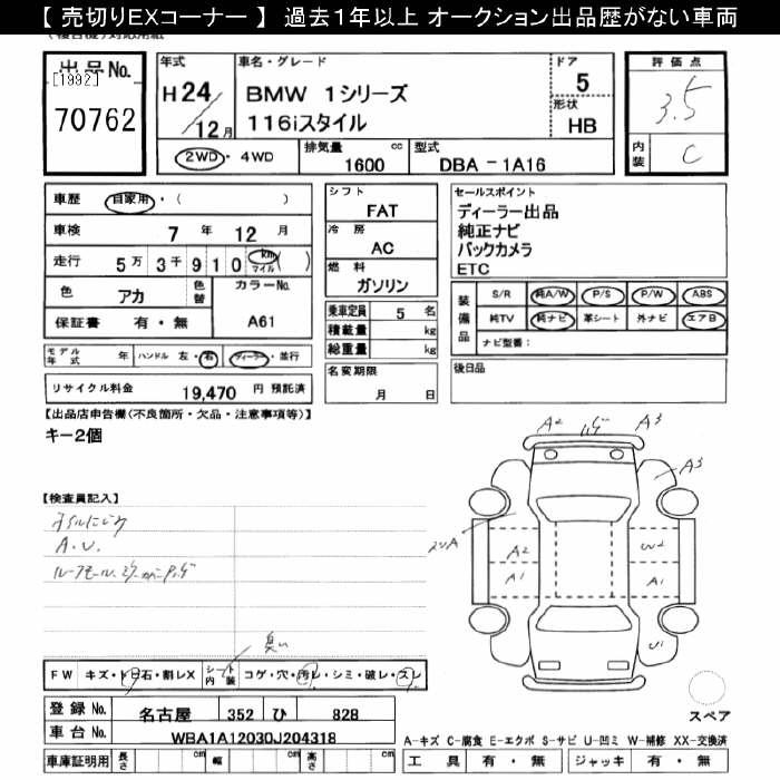 BMW 1 SERIES 116I STYLE - лот 70762