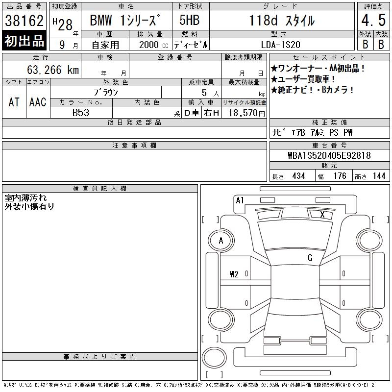 BMW 1 SERIES 118D STYLE - лот 38162