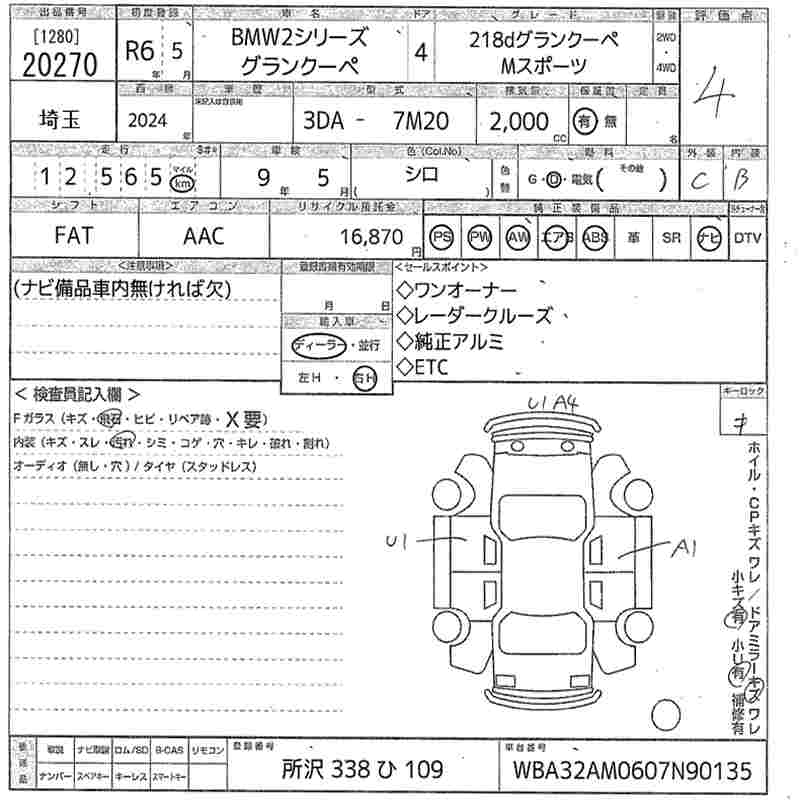 BMW 1 SERIES 218D GRAN COUPE M SPORT - лот 20270