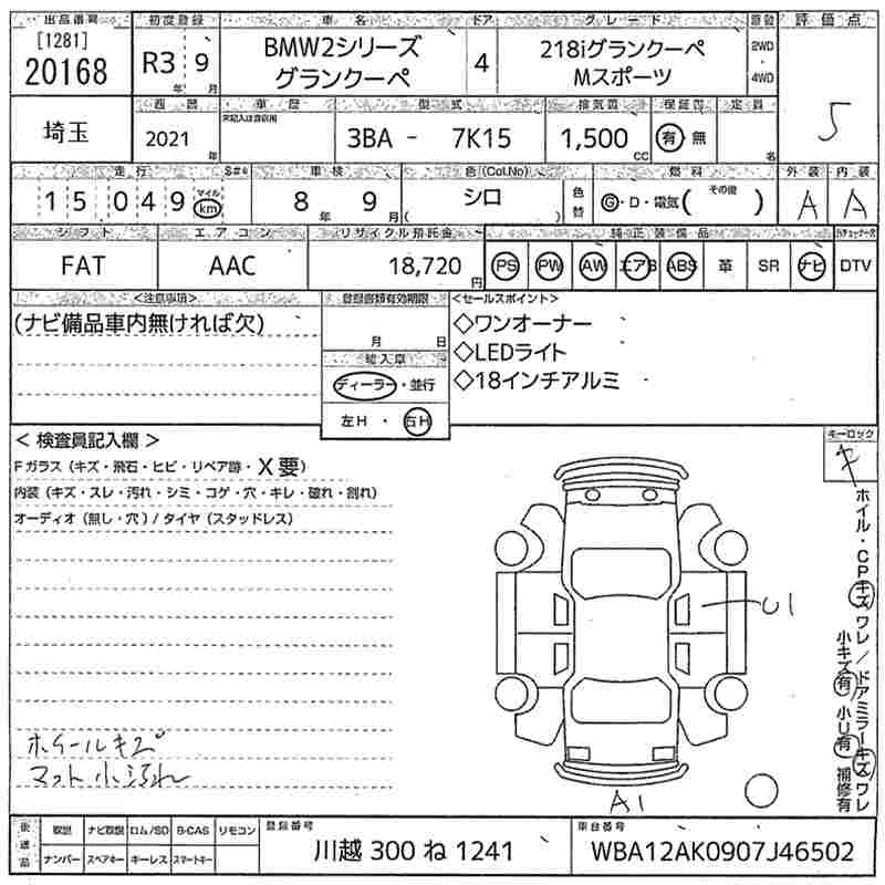 BMW 1 SERIES 218I GRAN COUPE M SPORT - лот 20168