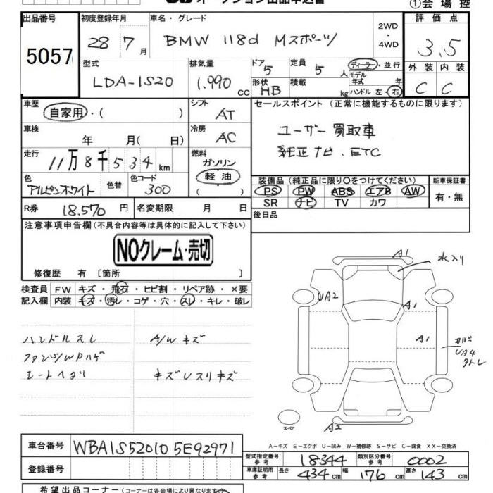 BMW 1 SERIES 118D M SPORT - лот 5057