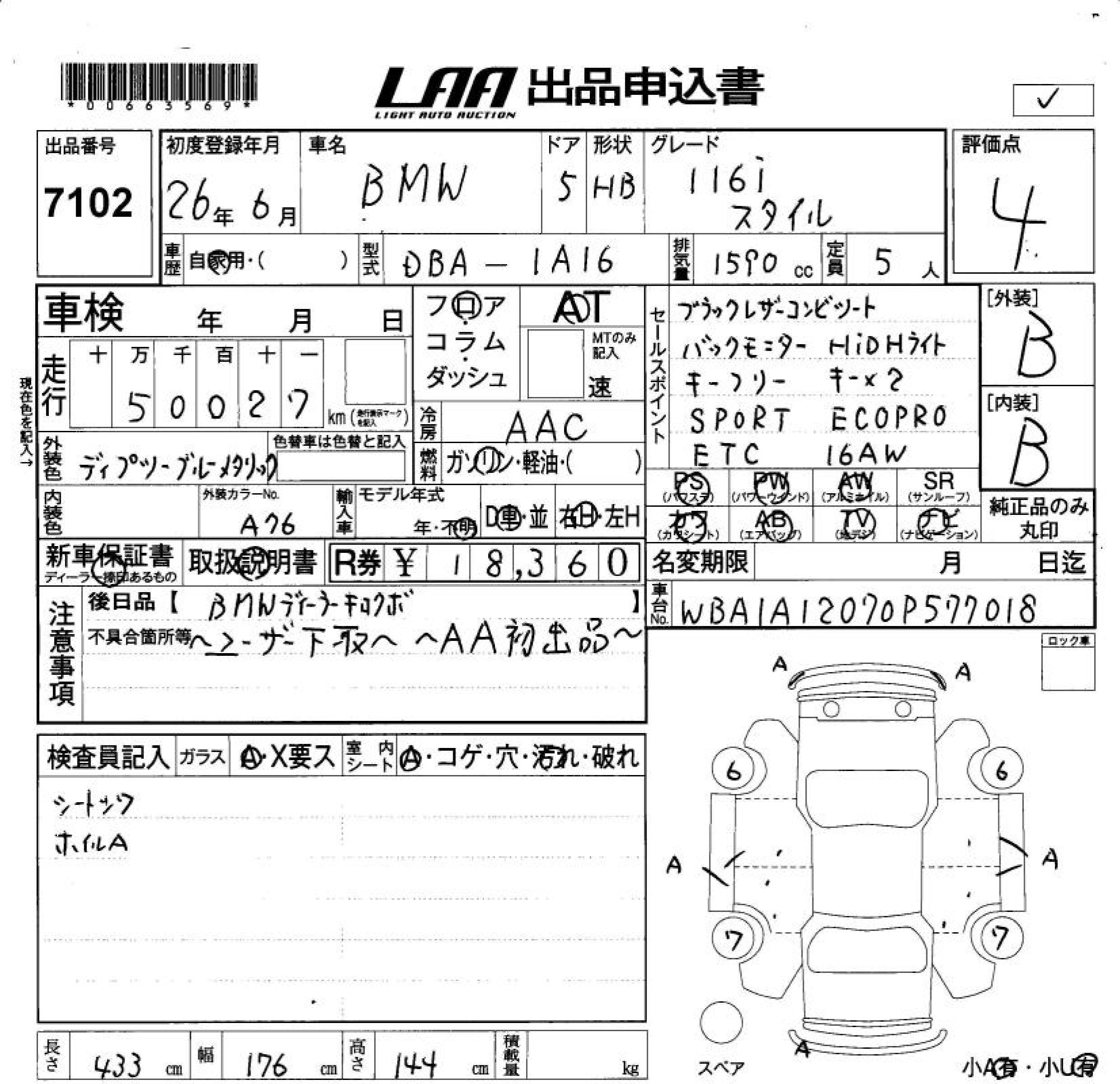 BMW 1 SERIES 116I STYLE - лот 7102