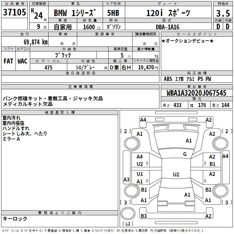 BMW 1 SERIES 120I SPORT - лот 37105