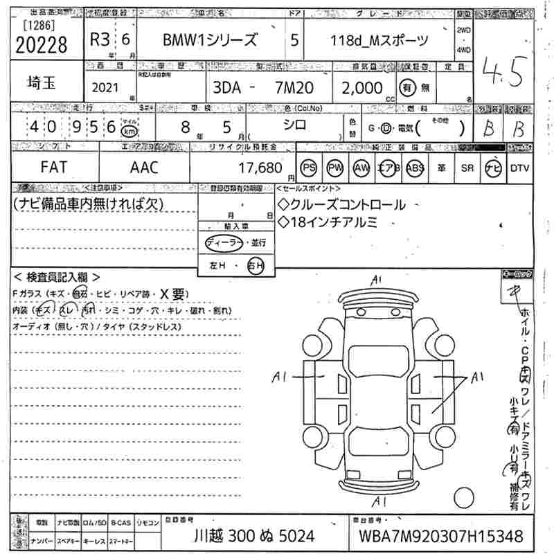 BMW 1 SERIES 118D_M SPORT - лот 20228