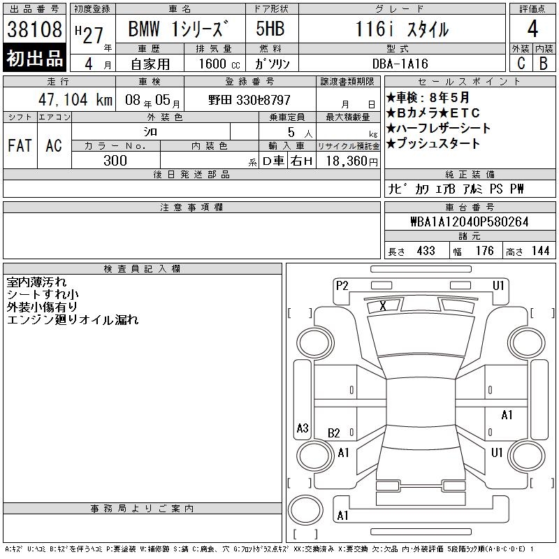 BMW 1 SERIES 116I STYLE - лот 38108