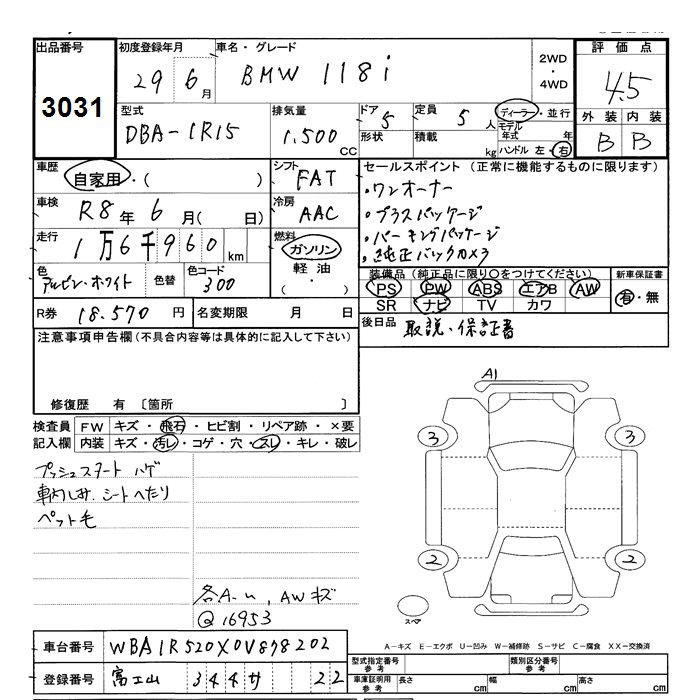 BMW 1 SERIES 118i - лот 3031