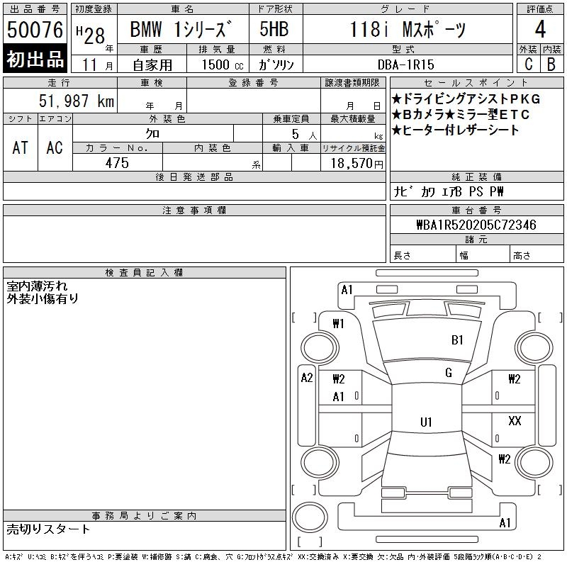 BMW 1 SERIES 118I M SPORT - лот 50076