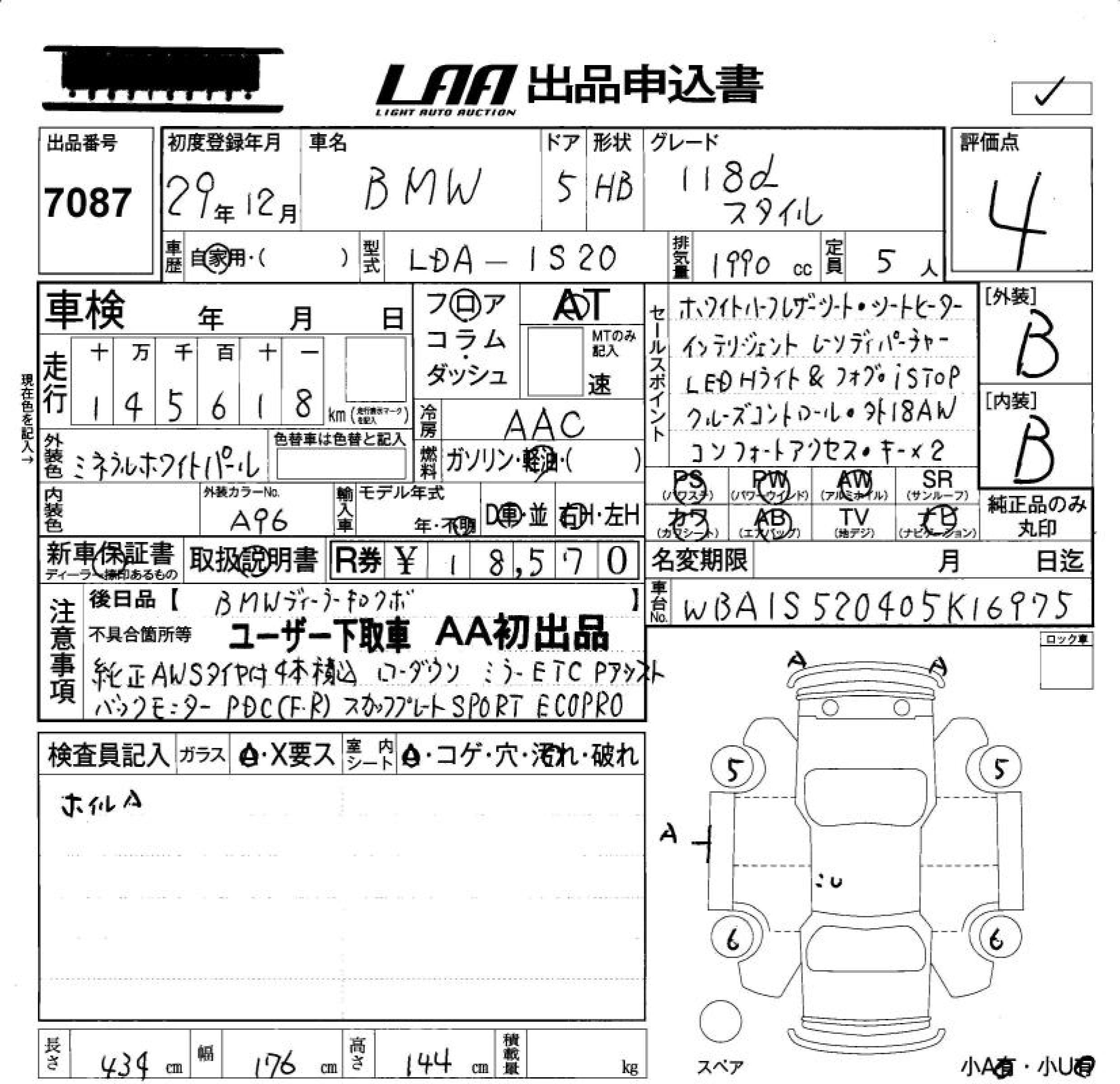 BMW 1 SERIES 118D STYLE - лот 7087