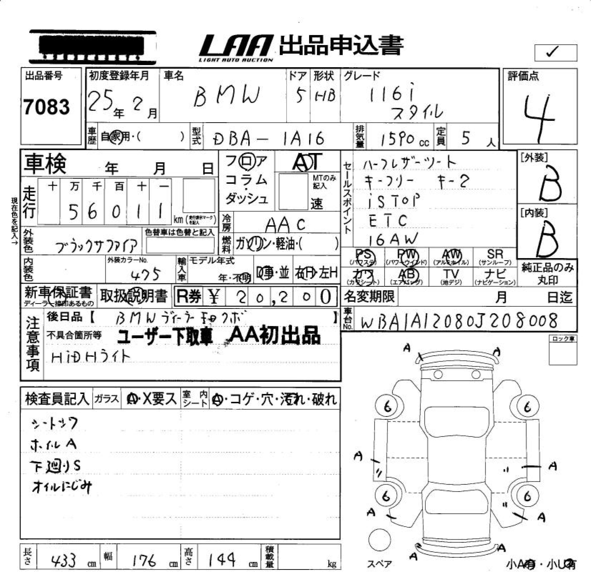 BMW 1 SERIES 116I STYLE - лот 7083