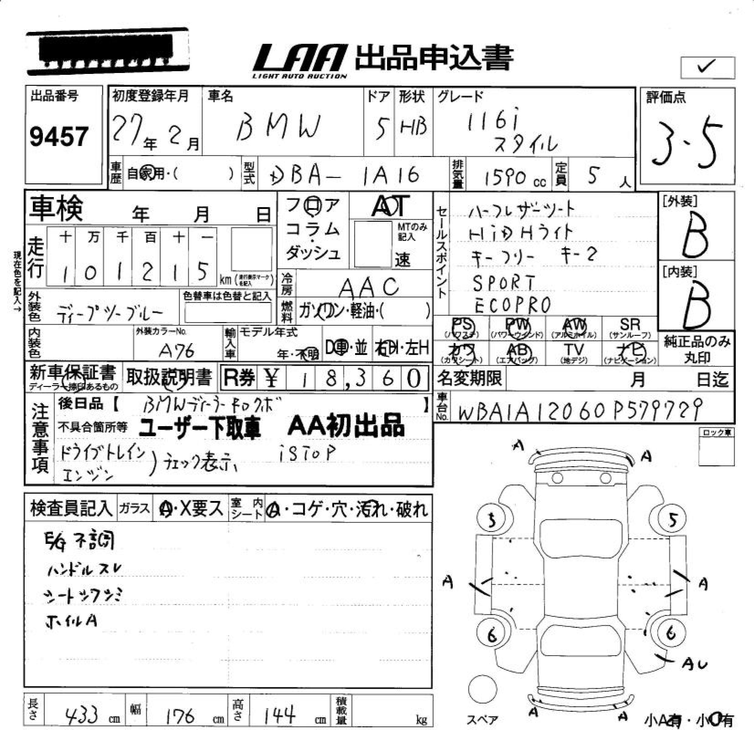 BMW 1 SERIES 116I STYLE - лот 9457
