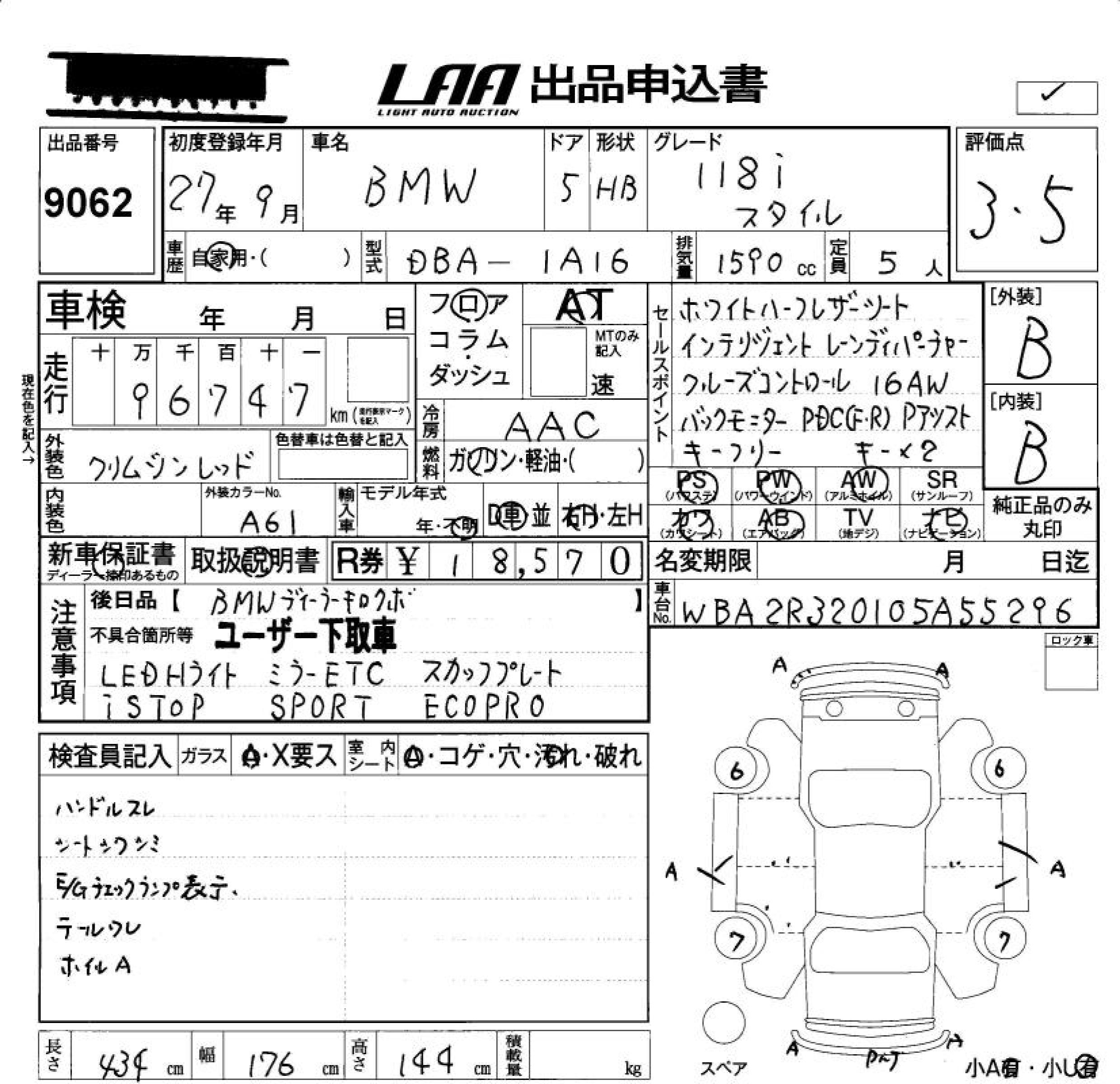 BMW 1 SERIES 118I STYLE - лот 9062